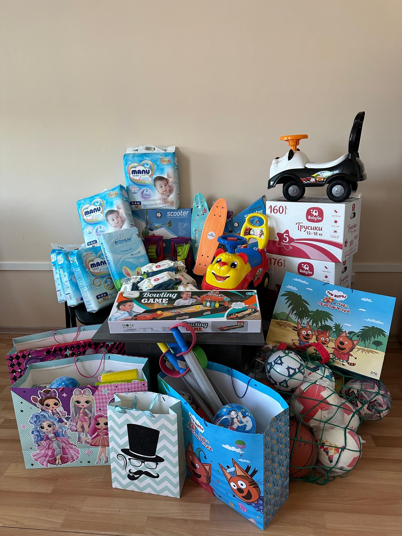 От Фонда, в том числе и от наших партнеров, мы вручили большое количество необходимых подарков – от погремушек для самых маленьких, до спортивного инвентаря для старших детей.